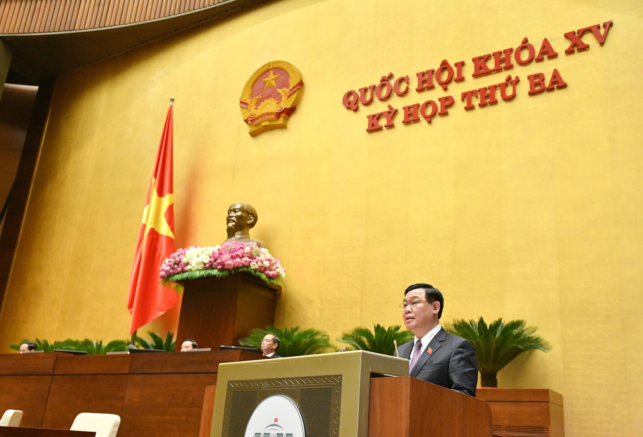 Chiều ngày 16/6, tại Nhà Quốc hội, dưới sự chủ trì của Chủ tịch Quốc hội Vương Đình Huệ, Quốc hội khóa XV bế mạc Kỳ họp thứ 3. Tại phiên bế mạc, Chủ tịch Quốc hội Vương Đình Huệ đã có bài phát biểu tại hội trường trước Quốc hội, ...