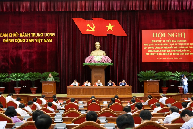 Sáng 17/6, Bộ Chính trị tổ chức Hội nghị quán triệt và triển khai thực hiện Nghị quyết số 12-NQ/TW ngày 16/3/2022 của Bộ Chính trị về đẩy mạnh xây dựng lực lượng Công an nhân dân thật sự trong sạch, vững mạnh, chính quy, tinh nhuệ, hiện đại, đáp ...