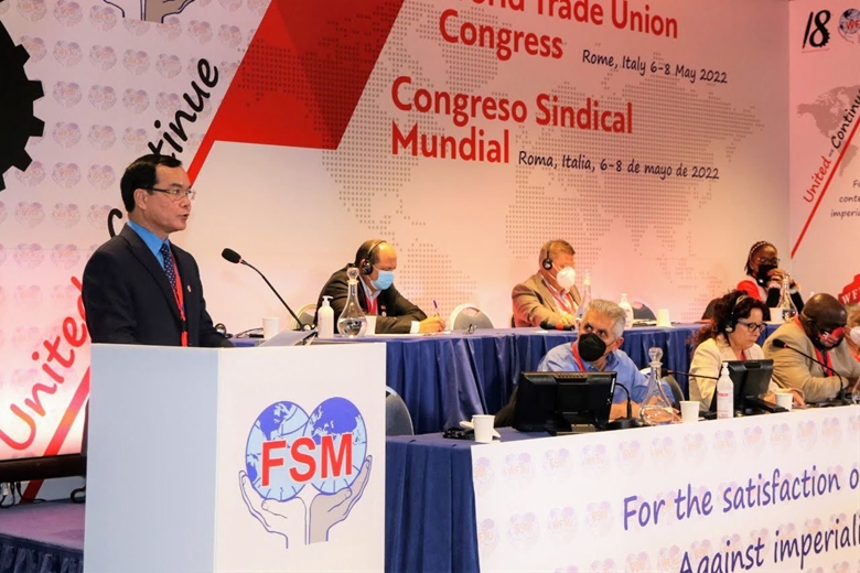 Đại hội lần thứ 18 Liên hiệp Công đoàn thế giới vừa diễn ra tại I-ta-li-a, Ủy viên Trung ương Đảng, Chủ tịch Tổng Liên đoàn Lao động (LĐLĐ) Việt Nam Nguyễn Đình Khang, vừa trúng cử Phó Chủ tịch Liên hiệp Công đoàn Thế giới, đã thông tin với báo chí về các nội dung được thảo luận và thông qua tại Đại hội.