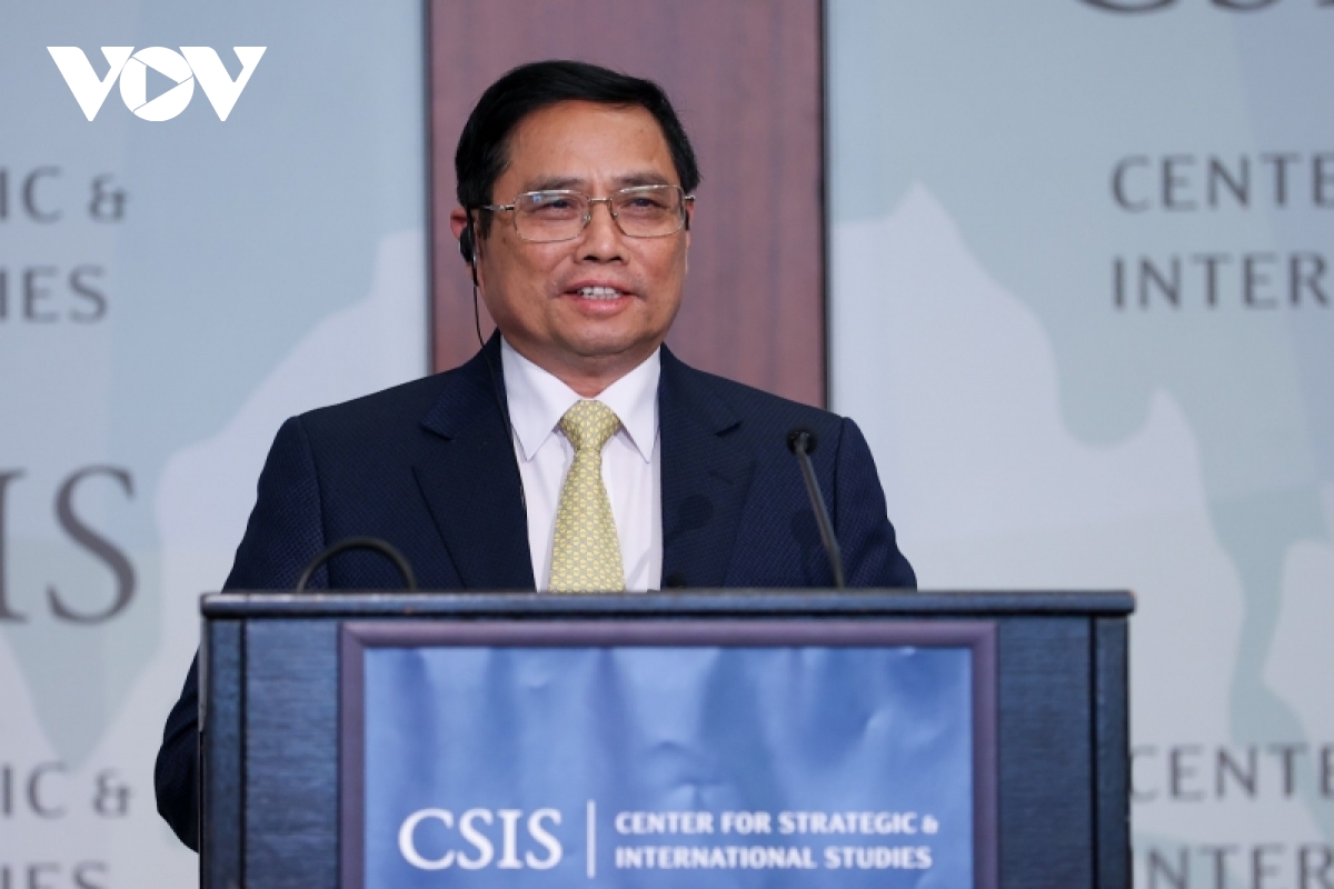 Trong bài phát biểu về chính sách tại Trung tâm nghiên cứu Chiến lược và Quốc tế Hoa Kỳ (CSIS), Thủ tướng Phạm Minh Chính nhấn mạnh, quan hệ hai nước Việt Nam - Hoa Kỳ đã phát triển vượt bậc sau gần 3 thập niên bình thường hoá quan hệ.