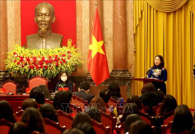Sáng 8/3, tại Phủ Chủ tịch, Phó Chủ tịch nước Võ Thị Ánh Xuân tiếp đoàn đại biểu cán bộ nữ ngành ngân hàng nhân dịp Ngày Quốc tế Phụ nữ 8/3.