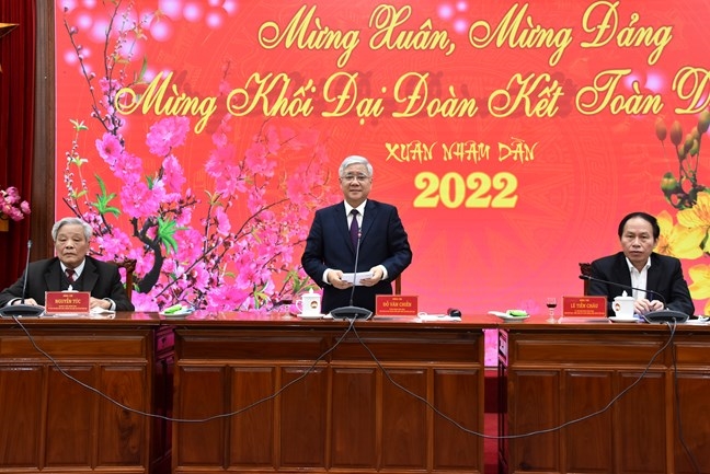 Chủ tịch Ủy ban Trung ương MTTQ Việt Nam Đỗ Văn Chiến nhấn mạnh, năm 2022, MTTQ Việt Nam sẽ thực hiện đa dạng hóa hình thức lắng nghe ý kiến của các tầng lớp nhân dân, nhất là những ý kiến tâm huyết, trách nhiệm của các cụ, các vị nguyên lãnh đạo, cán bộ Mặt trận qua các thời kỳ.