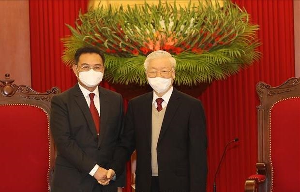 Tổng Bí thư Nguyễn Phú Trọng và Chủ tịch Quốc hội Lào Xay-xổm-phon Phôm-vi-hản bày tỏ vui mừng về mối quan hệ đặc biệt Việt Nam – Lào; khẳng định làm hết sức mình giữ gìn và truyền tiếp cho các thế hệ mai sau về mối quan hệ tốt đẹp Việt Nam – Lào...