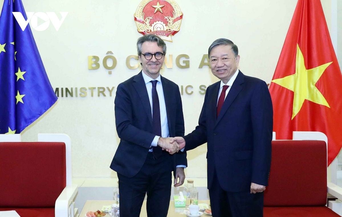Chiều tối nay 23/11, tại Hà Nội, Đại tướng Tô Lâm, Bộ trưởng Bộ Công an đã tiếp ngài Giorgio Aliberti, Đại sứ, Trưởng phái đoàn Liên minh Châu Âu (EU) tại Việt Nam.
