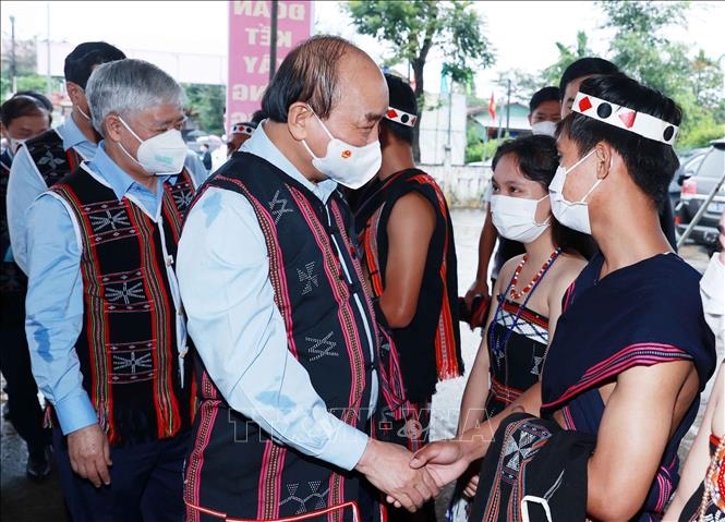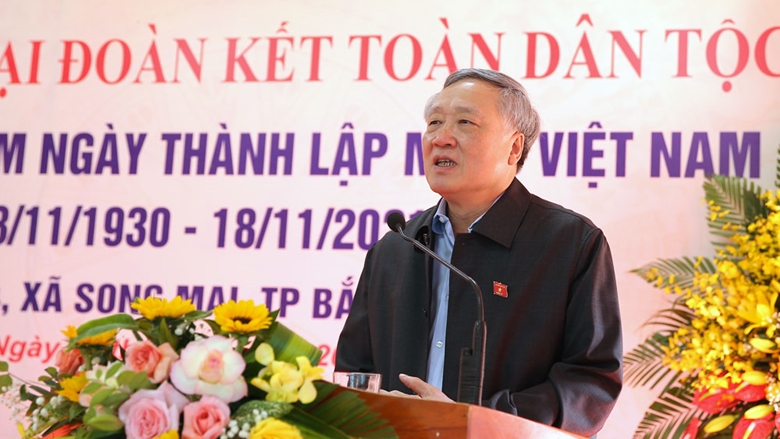 Đồng chí Nguyễn Hòa Bình bày tỏ niềm vui được về dự Ngày hội Đại đoàn kết toàn dân tộc tại địa phương. Đồng chí nhấn mạnh, việc tổ chức Ngày hội nhằm ôn lại truyền thống vẻ vang của MTTQ Việt Nam, tôn vinh tinh thần đoàn kết, gắn bó của nhân dân trong cộng đồng. Điều này càng có ý nghĩa hơn trong điều kiện đất nước bị ảnh hưởng của đại dịch COVID-19.
