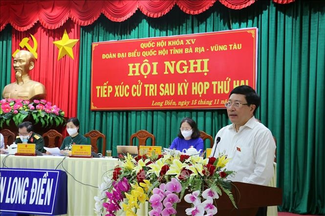 Sáng 15/11, Phó Thủ tướng Chính phủ Phạm Bình Minh cùng Đoàn đại biểu Quốc hội tỉnh Bà Rịa-Vũng Tàu đã tiếp xúc cử tri huyện Long Điền và huyện Đất Đỏ.