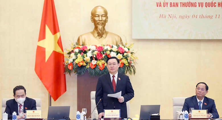 Chiều 3/11, Chủ tịch Quốc hội Vương Đình Huệ chủ trì phiên họp thứ ba của Ban Chỉ đạo của Đảng đoàn Quốc hội thực hiện 4 chuyên đề được phân công thuộc Đề án “Chiến lược xây dựng và hoàn thiện Nhà nước pháp quyền xã hội chủ nghĩa Việt ...