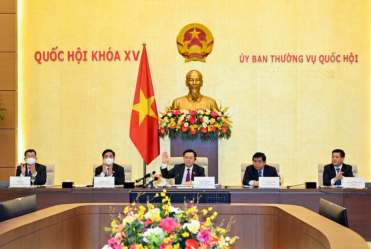 Sáng 30/9, theo đề nghị của Chủ tịch kiêm Tổng Giám đốc Hội đồng Kinh doanh Hoa Kỳ-ASEAN Ted Osius, Chủ tịch Quốc hội Vương Đình Huệ chủ trì cuộc làm việc trực tiếp kết hợp trực tuyến với Đoàn doanh nghiệp cấp cao của Hội đồng Kinh doanh Hoa Kỳ-ASEAN.