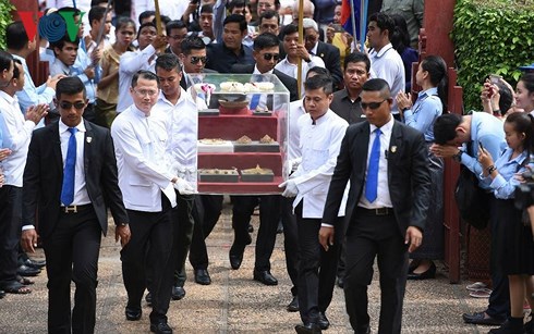 Sáng 2/12, tại tỉnh Xiêm Riệp, chính quyền Campuchia đã làm lễ đón nhận các cổ vật làm bằng vàng đã bị thất lạc trong những năm chiến tranh.