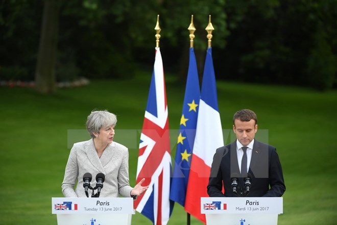 Thủ tướng Anh Theresa May đang ở thăm Pháp ngày 13/6 tuyên bố cuộc đàm phán khởi động tiến trình đưa nước Anh rời khỏi Liên minh châu Âu (EU), còn gọi là Brexit, vẫn bắt đầu theo đúng kế hoạch.