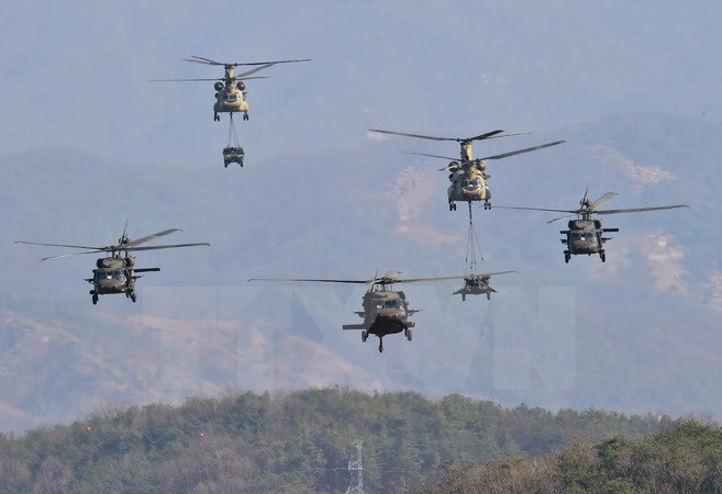 Theo phóng viên TTXVN tại Đức, gần 100 chiếc trực thăng Chinook, Apace và Black Hawk của quân đội Mỹ đã được đưa tới một cảng ở miền Bắc nước Đức để di chuyển đến căn cứ tại bang Bayern ở miền Nam.