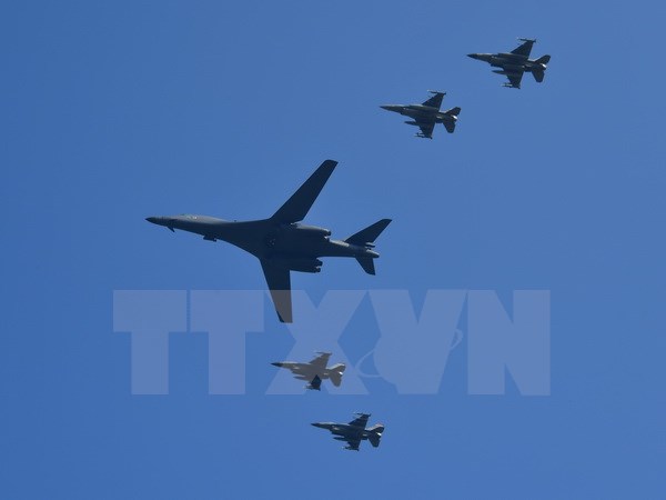 Theo Kyodo, ngày 13/9, Mỹ đã triển khai các máy bay ném bom trên bầu trời Hàn Quốc và tiến hành huấn luyện chung với các máy bay tiêm kích của Nhật Bản và Hàn Quốc tại các vùng phụ cận của những nước này.