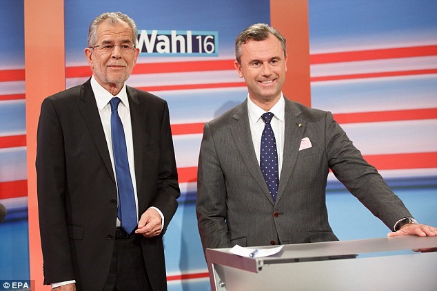 Theo phóng viên TTXVN tại châu Âu, kết quả sơ bộ cuộc bầu cử tổng thống vòng hai tại Áo ngày 22/5 cho thấy ứng cử viên Norbert Hofer thuộc Đảng Tự do Áo (FPO) và ứng cử viên đảng Xanh Alexander van der Bellen giành số phiếu sít sao nhau.