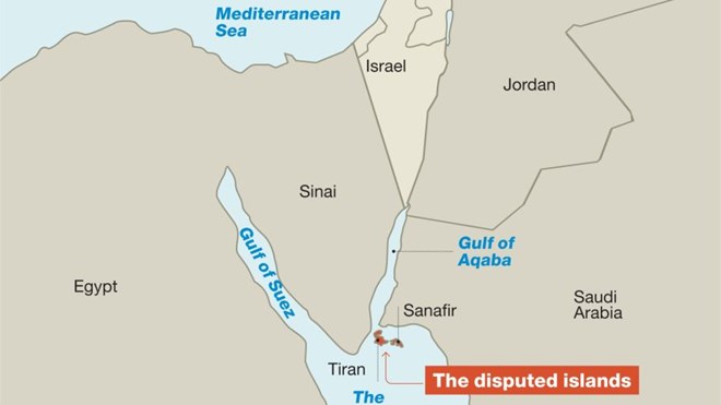 Ngày 13/4, Tổng thống Ai Cập Abdel-Fattah El-Sisi khẳng định các văn bản chính thức đã xác định hai đảo Tiran và Sanafir tại eo biển Tiran, nằm trong vịnh Aqaba ở Biển Đỏ, thuộc chủ quyền của Saudi Arabia, đồng thời kêu gọi người dân chấm dứt bàn luận hay tranh cãi về vấn đề này.
