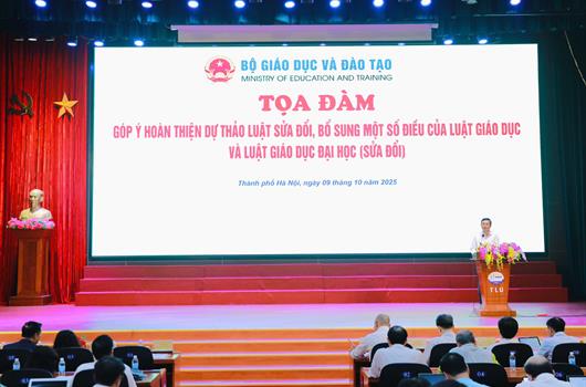 Ngày 09/10, tại Hà Nội, Bộ Giáo dục và Đào tạo (GDĐT) đã tổ chức tọa đàm góp ý hoàn thiện dự thảo Luật Sửa đổi, bổ sung một số điều của Luật Giáo dục và Luật Giáo dục đại học (sửa đổi). Thứ trưởng Nguyễn Văn Phúc chủ trì tọa đàm. ...