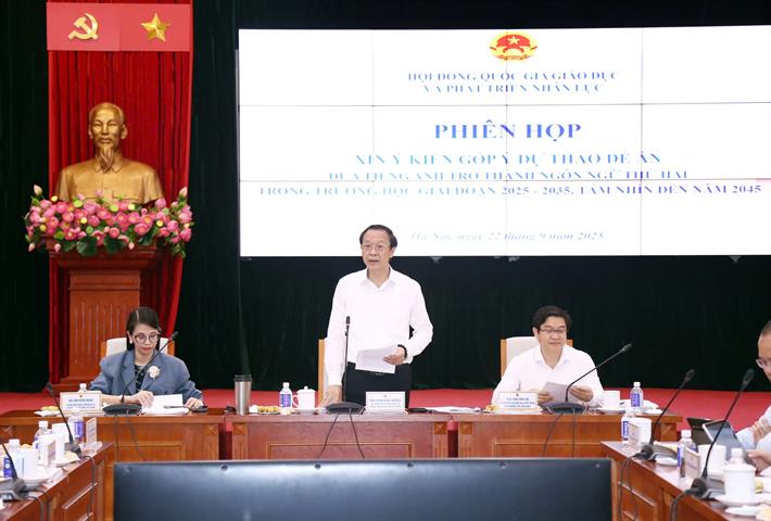 Ngày 22/9, tại Hà Nội, Hội đồng Quốc gia Giáo dục và Phát triển nhân lực tổ chức phiên họp xin ý kiến góp ý dự thảo Đề án “Đưa tiếng Anh thành ngôn ngữ thứ hai trong trường học giai đoạn 2025-2035, tầm nhìn đến năm 2045” (sau đây gọi là Đề ...