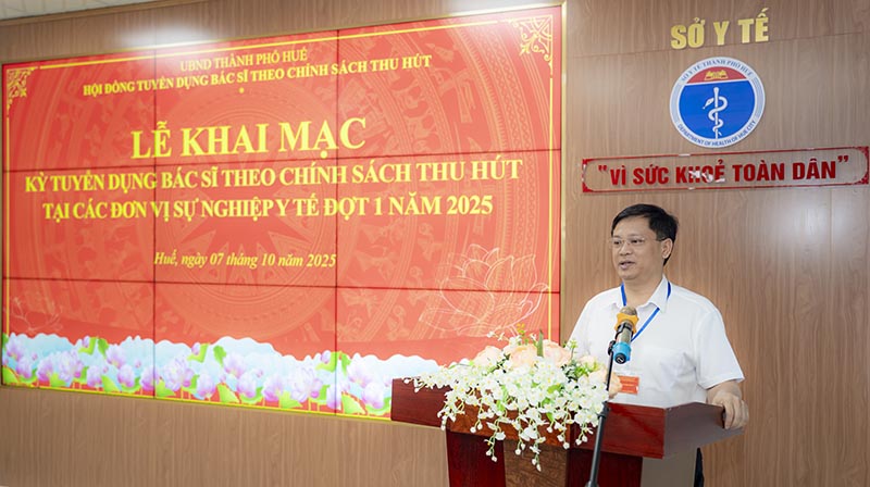Sáng 7/10, Hội đồng tuyển dụng bác sĩ theo chính sách thu hút tại các đơn vị sự nghiệp Y tế thành phố Huế tổ chức khai mạc kỳ tuyển dụng bác sĩ theo chính sách thu hút tại các đơn vị sự nghiệp Y tế thành phố đợt I, năm 2025. Dự khai mạc có UVTV Thành uỷ, Phó Chủ tịch Thường trực UBND thành phố Huế Nguyễn Thanh Bình; lãnh đạo Sở Nội vụ; Sở Y tế thành phố Huế; cùng các thành viên Hội đồng tuyển dụng.