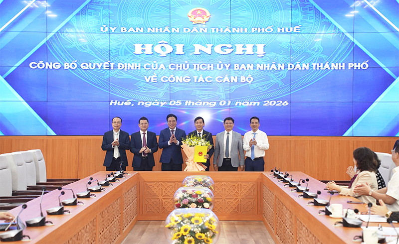 Sáng 5/1, UBND thành phố Huế tổ chức hội nghị công bố Quyết định của Chủ tịch UBND thành phố về công tác cán bộ. Phó Bí thư Thành ủy, Chủ tịch UBND thành phố Nguyễn Khắc Toàn chủ trì hội nghị và trao Quyết định bổ nhiệm.