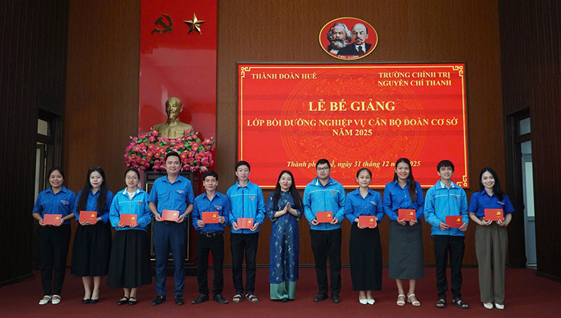 Ngày 31/12, tại trường Chính trị Nguyễn Chí Thanh, Ban Thường vụ Thành Đoàn Huế phối hợp với Ban Giám hiệu Trường Chính trị Nguyễn Chí Thanh tổ chức bế giảng Lớp bồi dưỡng nghiệp vụ cán bộ Đoàn cơ sở năm 2025.