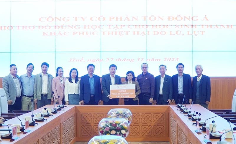 Ngày 27/11, tại trụ sở UBND thành phố Huế, Đoàn công tác của Công ty Cổ phần Tôn Đông Á đã trao tặng đồ dùng học tập nhằm hỗ trợ học sinh trên địa bàn khắc phục thiệt hại do mưa lũ. Dự buổi tiếp nhận có UVTV Thành uỷ, Phó Chủ tịch Thường ...