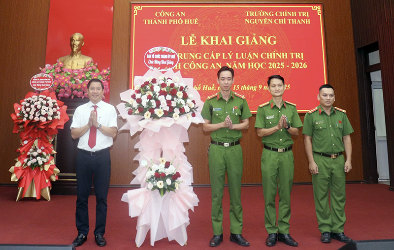 Ngày 15/9, tại Hội trường trường Chính trị Nguyễn Chí Thanh, Công an thành phố Huế phối hợp Trường Chính trị Nguyễn Chí Thanh đã long trọng tổ chức Lễ khai giảng lớp Trung cấp lý luận chính trị ngành Công an, năm học 2025 - 2026, hệ tập trung.