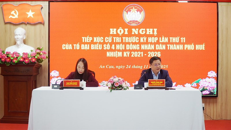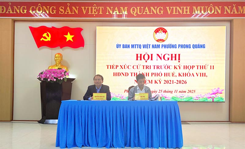 Sáng 25/11, Tổ đại biểu số 2 HĐND thành phố Huế khóa VIII, nhiệm kỳ 2021 - 2026 đã có buổi tiếp xúc cử tri tại phường Phong Quảng trước Kỳ họp thứ 11 HĐND thành phố. Chủ trì buổi tiếp xúc có đồng chí Nguyễn Đình Đức - Thành ủy viên, Giám đốc Sở Nông nghiệp và Môi trường thành phố Huế; đồng chí Hoàng Phú - Phó Trưởng Ban Kinh tế - Ngân sách HĐND thành phố Huế.
