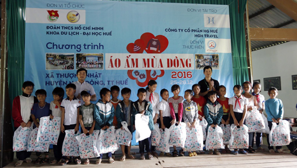 Trong 2 ngày 25 và 26/12, Đoàn TNCS Hồ Chí Minh Khoa Du lịch Đại học Huế phối hợp với Công ty cổ phần HG Huế - HGH Travel tổ chức chương trình “Áo ấm mùa đông” lần thứ 3, năm 2016 tại xã Thượng Nhật, huyện Nam Đông.