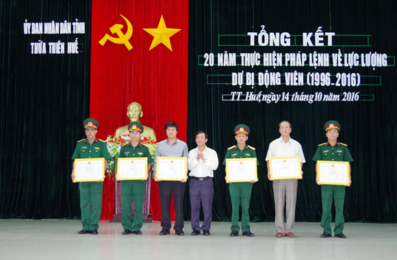 Sáng ngày 14/10, UBND tỉnh Thừa Thiên Huế tổ chức Hội nghị tổng kết 20 năm thực hiện Pháp lệnh về lực lượng Dự bị động viên (1996 - 2016). Đến dự có Thiếu tướng Nguyễn Sĩ Hội - Phó Tư lệnh Quân khu 4, đồng chí Nguyễn Văn Cao - Phó Bí thư tỉnh ...