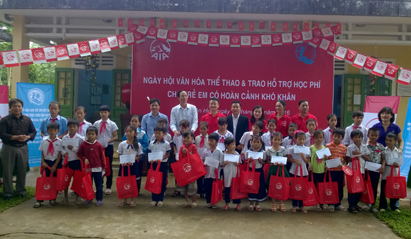 Sáng ngày 11/10, Quỹ Bảo trợ trẻ em tỉnh phối hợp với Công ty TNHH Bảo hiểm Nhân thọ AIA Việt Nam và huyện Nam Đông tổ chức Ngày hội văn thể mỹ và trao tặng học bổng cho học sinh có hoàn cảnh khó khăn tại Trường tiểu học Thượng Long.