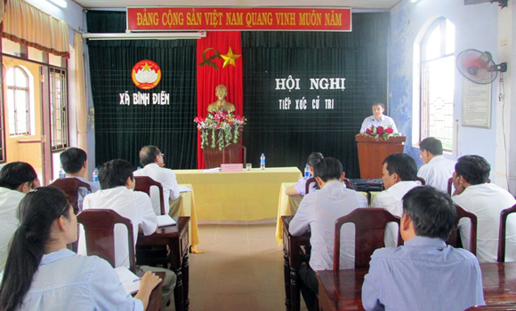 Chiều ngày 29/9, tại xã Bình Điền, thị xã Hương Trà, Đoàn đại biểu Quốc hội tỉnh Thừa Thiên Huế khóa XIV do ông Phạm Như Hiệp - Giám đốc Bệnh viện Trung ương Huế dẫn đầu đã có buổi tiếp xúc với cử tri 5 xã vùng núi của thị xã Hương Trà là: ...