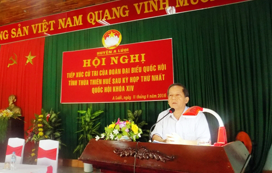Sáng ngày 11/8/2016, tại Hội trường Huyện ủy huyện A Lưới, đồng chí Phan Ngọc Thọ - Ủy viên Thường vụ Tỉnh ủy, Phó Chủ tịch Thường trực UBND tỉnh Thừa Thiên Huế, Trưởng Đoàn đại biểu Quốc hội tỉnh đã có buổi tiếp xúc cử tri tại huyện ...