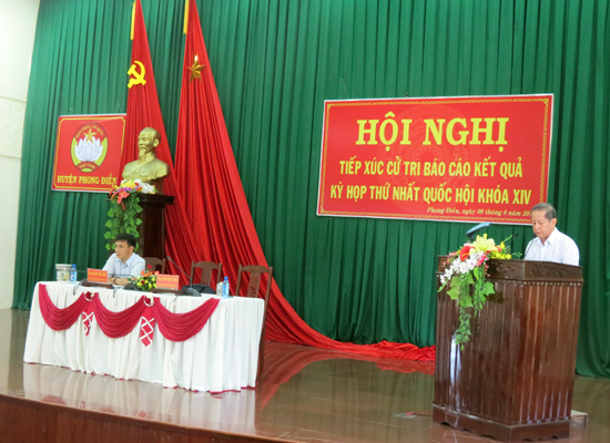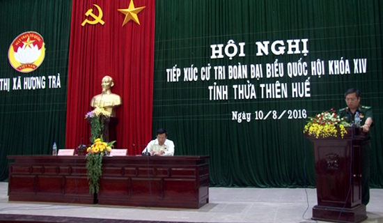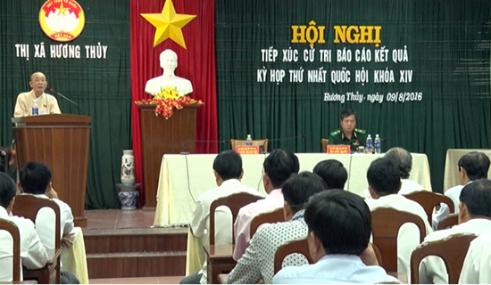 Chiều 9/8, Đoàn đại biểu Quốc hội tỉnh, gồm: Hòa thượng Thích Chơn Thiện và Thiếu tướng Bùi Đức Hạnh đã có buổi tiếp xúc cử tri thị xã Hương Thủy nhằm thông báo kết quả kỳ họp thứ nhất, Quốc hội khóa XIV.