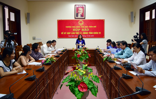 Chiều ngày 04/12, Thường trực HĐND tỉnh tổ chức buổi họp báo với các cơ quan báo chí Trung ương và địa phương về nội dung, thời gian tổ chức kỳ họp thứ 11, HĐND tỉnh khóa VI. Bà Phạm Thị Bích Thủy, Ủy viên Thường trực HĐND tỉnh chủ trì buổi họp ...