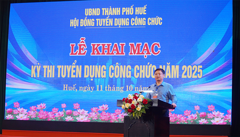 Sáng 11/10, tại Trung tâm Văn hoá – Điện ảnh, Hội đồng tuyển dụng công chức năm 2025 thành phố Huế tổ chức lễ khai mạc kỳ thi tuyển dụng công chức năm 2025. Dự lễ có Ủy viên Thường vụ Thành ủy, Phó Chủ tịch Thường trực UBND thành phố, Chủ tịch Hội đồng thi Nguyễn Thanh Bình; lãnh đạo Sở Nội vụ; cùng các thành viên Hội đồng tuyển dụng công chức năm 2025 thành phố Huế.