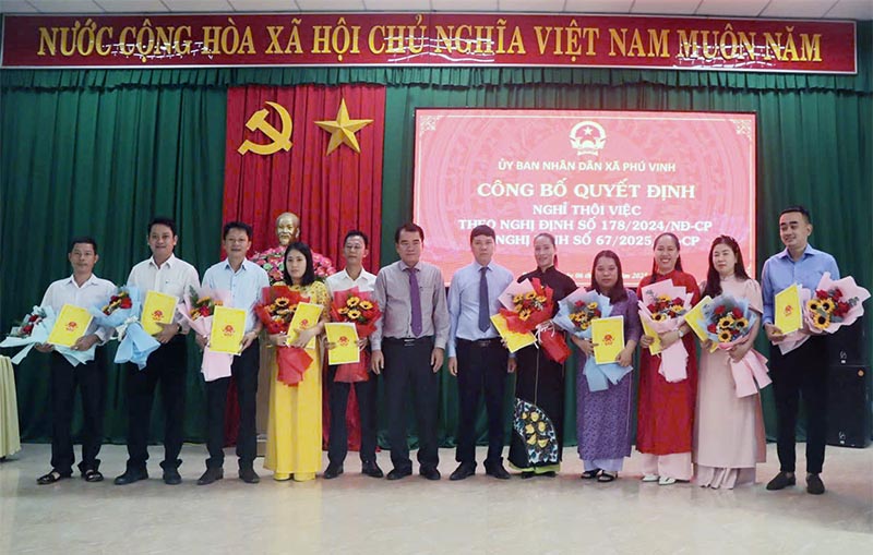 Ngày 06/10, UBND xã Phú Vinh tổ chức Hội nghị Công bố Quyết định nghỉ thôi việc và hưởng chế độ, chính sách đối với các công chức theo Nghị định 178/2024/NĐ-CP và Nghị định số 67/2025/NĐ-CP của Chính phủ.