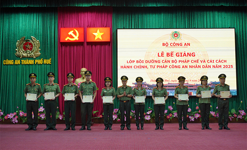 Ngày 25/9, tại thành phố Huế, Cục pháp chế và cải cách hành chính, tư pháp - Bộ Công an đã phối hợp với Công an thành phố Huế tổ chức Lễ bế giảng Lớp bồi dưỡng cán bộ pháp chế và cải cách hành chính, tư pháp Công an nhân dân năm 2025. Thiếu tướng ...