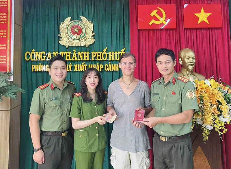 Ngày 19/9, Phòng Quản lý xuất nhập cảnh Công an TP. Huế phối hợp cùng Công an phường Kim Long đã tiến hành trao trả hộ chiếu và tài sản cho ông Klimov Pavel (sinh năm 1973, quốc tịch Nga), du khách đang lưu trú tại TP. Huế, sau khi ông không may đánh rơi trong quá ...