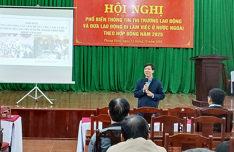 Ngày 11/12, UBND phường Phong Điền phối hợp với Phòng Lao động – Việc làm, Sở Nội vụ thành phố Huế tổ chức hội nghị phổ biến thông tin thị trường lao động và đưa lao động đi làm việc ở nước ngoài theo hợp đồng năm 2025. Dự hội nghị có Phó Chủ tịch UBND phường Phong Điền Trương Minh Phát cùng lãnh đạo Phòng Văn hóa - Xã hội phường Phong Điền; các doanh nghiệp trên địa bàn thành phố cùng Tổ trưởng các tổ dân phố; ...