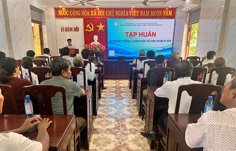 Chiều 23/9, tại Hội trường UBND xã Quảng Điền, Sở Khoa học và Công nghệ thành phố phối hợp với UBND xã Quảng Điền tổ chức hội nghị tập huấn kỹ thuật trồng và chăm sóc cây sen cho các hộ nông dân trồng sen trên địa bàn xã. Tham dự lớp tập huấn ...