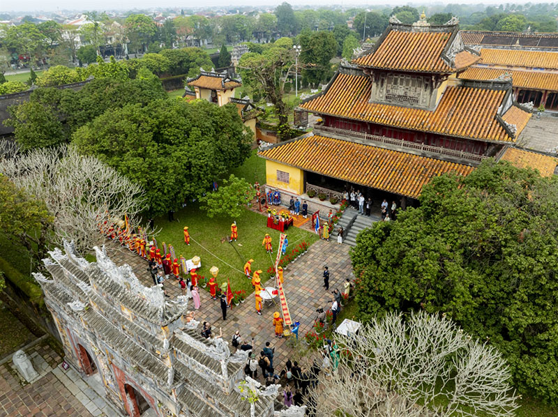 Sáng 11/2 (nhằm ngày 24 tháng Chạp năm Ất Tỵ), trong khuôn khổ chuỗi hoạt động Xuân Ất Tỵ 2026, tại sân Đại triều Điện Thái Hòa – Đại Nội Huế, Trung tâm Bảo tồn Di tích Cố đô Huế tổ chức chương trình tái hiện Lễ Thiết triều Nguyên đán dưới triều Nguyễn. Tham dự chương trình có Ủy viên Ban Thường vụ Thành ủy, Phó Chủ tịch Thường trực UBND thành phố Huế Nguyễn Thanh Bình cùng lãnh đạo các sở, ban, ngành.