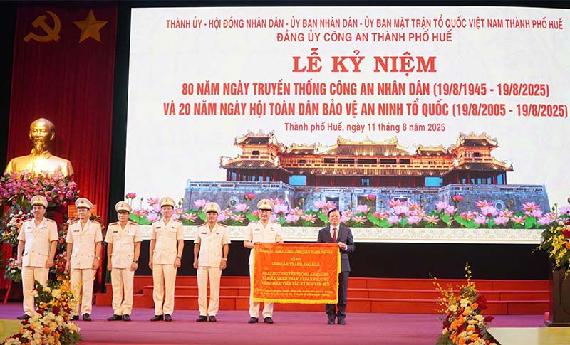 Chiều 11/8, tại Trung tâm Văn hóa - Điện ảnh thành phố, Thành ủy - HĐND - UBND - Ủy ban MTTQ Việt Nam thành phố Huế long trọng tổ chức Lễ kỷ niệm 80 năm Ngày truyền thống Công an nhân dân (19/8/1945 - 19/8/2025) và 20 năm Ngày hội toàn dân bảo vệ an ninh Tổ ...