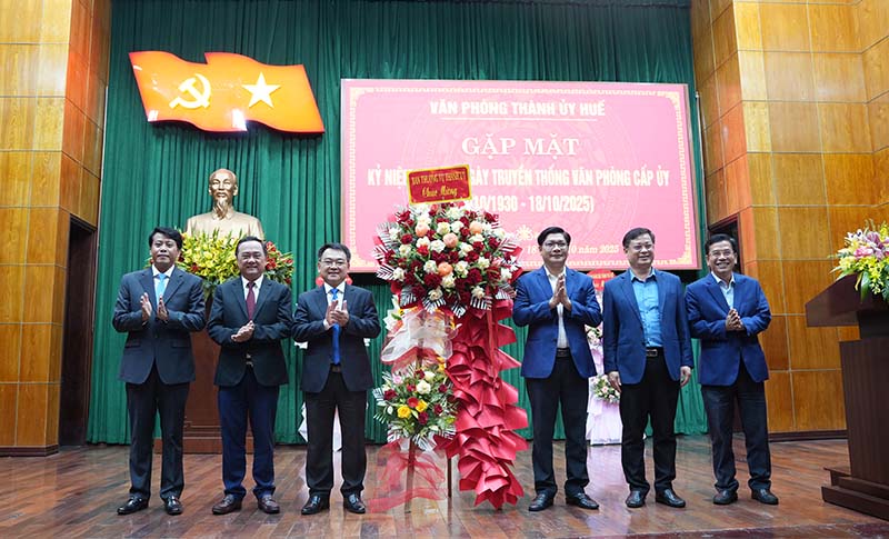 Ngày 18/10, Văn phòng Thành ủy Huế tổ chức buổi gặp mặt kỷ niệm 95 năm Ngày truyền thống Văn phòng cấp ủy (18/10/1930 -18/10/2025). Tham dự buổi gặp mặt có Phó Bí thư Thành ủy, Phó Chủ tịch UBND thành phố Nguyễn Chí Tài; các UVTV Thành ủy: Đặng Ngọc ...