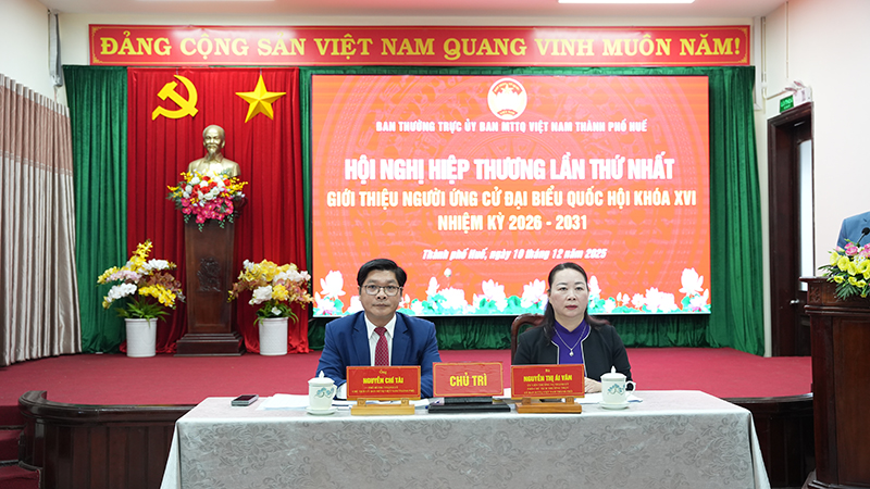 Ngày 10/12, Ủy ban MTTQ Việt Nam thành phố Huế tổ chức Hội nghị hiệp thương lần thứ nhất, giới thiệu người ứng cử đại biểu Quốc hội khóa XVI và đại biểu HĐND nhiệm kỳ 2026 - 2031. Tham dự có các Phó Bí thư Thành ủy: Chủ tịch UBND thành phố, Chủ ...