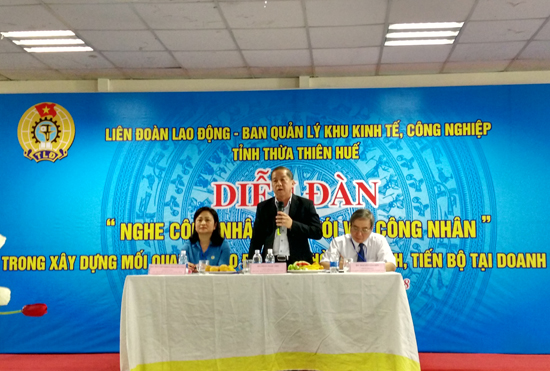 Chiều ngày 17/3/2018, tại công ty TNHH Hanesbrands (HBI), khu công nghiệp Phú Bài, thị xã Hương Thủy, Liên đoàn Lao động tỉnh đã phối hợp với Ban Quản lý Khu kinh tế, công nghiệp tỉnh tổ chức Diễn đàn “Nghe công nhân nói - Nói với công nhân”.