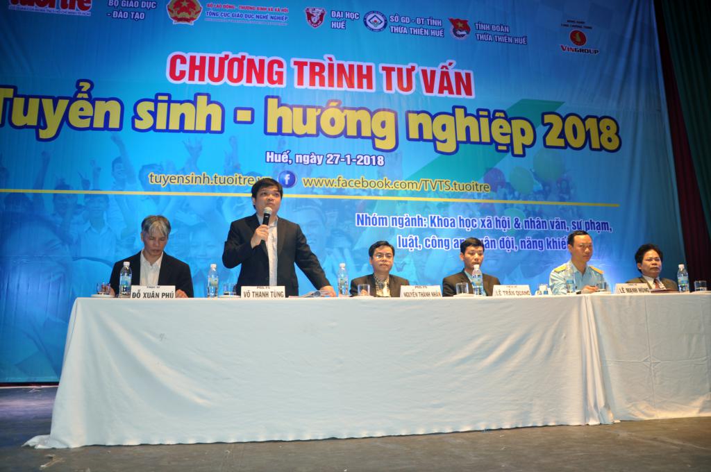 Nhằm giúp học sinh có những thông tin mới nhất về kỳ thi THPT quốc gia và tuyển sinh đại học, cao đẳng năm 2018, sáng 27/01/2018, tại Trung tâm Hoạt động Thanh thiếu niên tỉnh Thừa Thiên Huế, Đại học Huế phối hợp với Báo Tuổi trẻ tổ chức Chương trình Tư vấn tuyển sinh 2018 tại Huế.