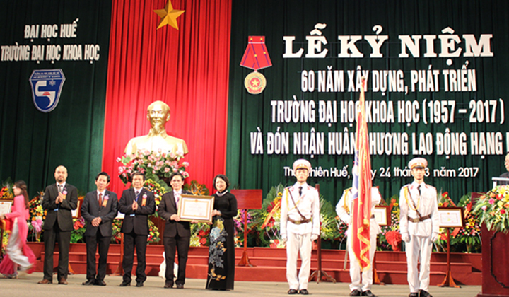 Sáng 24/3, Trường Đại học Khoa học thuộc Đại học Huế đã long trọng tổ chức Lễ kỷ niệm 60 năm xây dựng và phát triển (1957 - 2017) và đón nhận Huân chương Lao động hạng Nhì. Tham dự lễ kỷ niệm có bà Đặng Thị Ngọc Thịnh - UVTW Đảng, Phó Chủ tịch nước CHXHCN Việt Nam; ông Lê Trường Lưu - UVTW Đảng, Bí thư Tỉnh ủy, Chủ tịch HĐND tỉnh; ông Nguyễn Văn Cao - Phó Bí thư Tỉnh ủy, Chủ tịch UBND tỉnh; ông Phan Ngọc Thọ - UVTV, ...