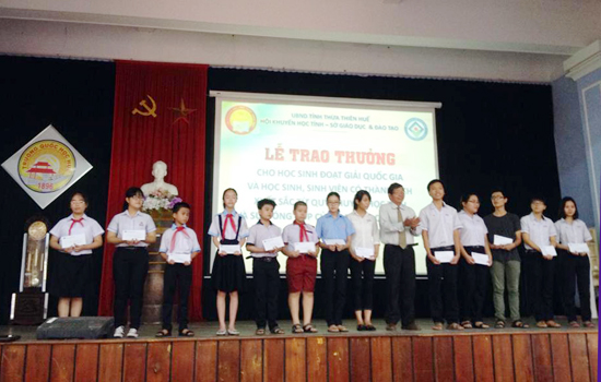 Chiều ngày 27/6/2016, tại trường Quốc Học Huế, Hội Khuyến học tỉnh phối với Sở Giáo dục và Đào tạo tổ chức Lễ trao thưởng cho học sinh đạt giải quốc gia và học sinh, sinh viên có thành tích xuất sắc năm học 2015 - 2016.