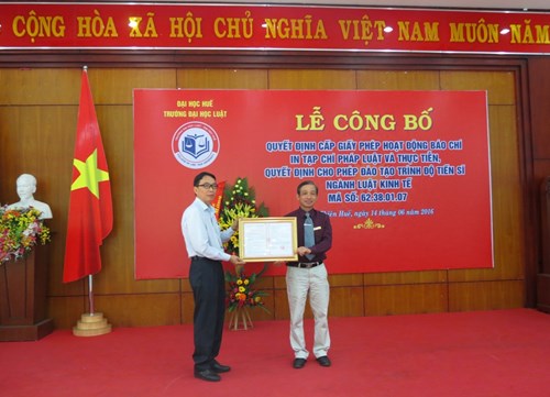 Chiều 14/6, Trường Đại học Luật - Đại học Huế tổ chức Lễ công bố quyết định của Bộ trưởng Bộ GD&ĐT cho phép đào tạo trình độ tiến sĩ ngành Luật Kinh tế và quyết định của Bộ trưởng Bộ Thông tin Truyền thông về việc cấp giấy phép hoạt ...