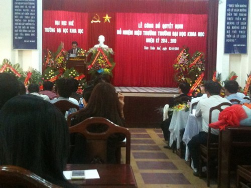 Sáng ngày 3/11, tại Trường Đại học Khoa học (ĐH Huế) diễn ra Lễ bổ nhiệm Hiệu trưởng nhiệm kỳ 2014 - 2019.