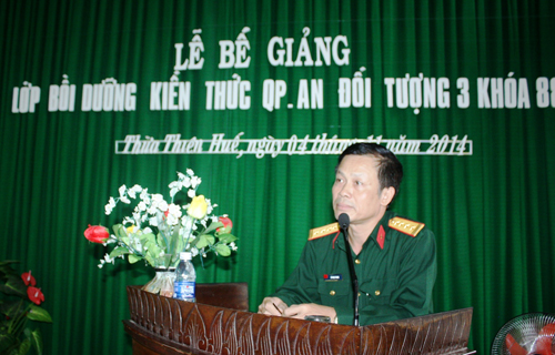 Chiều ngày 04/11, Hội đồng giáo dục quốc phòng và an ninh tỉnh Thừa Thiên Huế tổ chức bế giảng lớp bồi dưỡng kiến thức quốc phòng và an ninh đối tượng 3 cho 66 đồng chí là giảng viên đang giữ các chức vụ trưởng, phó phòng và tương đương thuộc ...